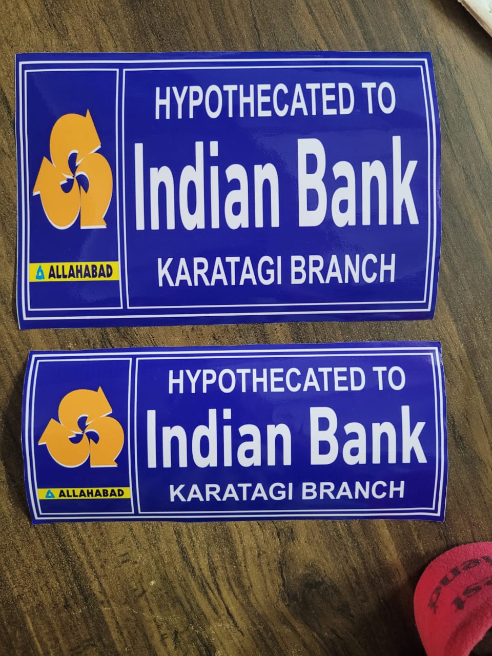 Enhance your branding with our custom hypothecation stickers/boards, available in 9×4 and 9×6 inches. Featuring your logo and hypothecation details, these durable boards are perfect for marking assets and reinforcing your institution’s identity.