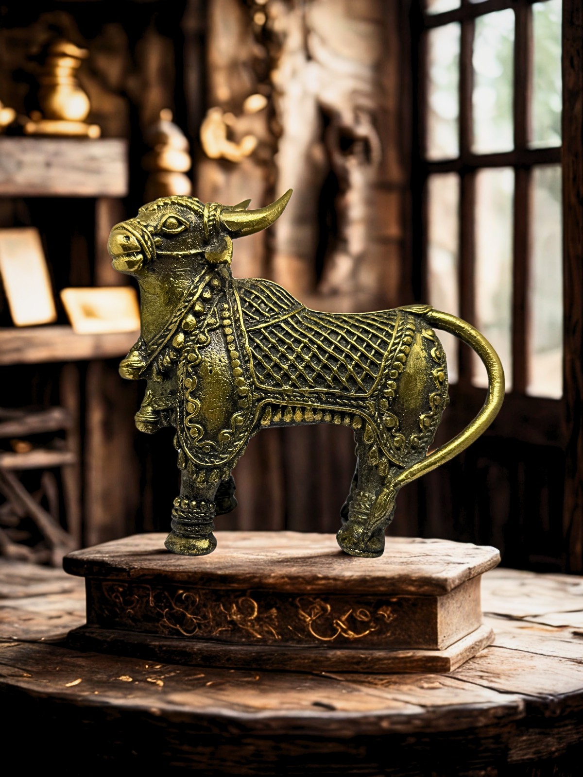 This exquisite Nandi enhances your home decor by adding a touch of spiritual elegance and cultural depth. Whether placed on a pooja altar, a living room shelf, or as a centerpiece in your meditation space, it brings serenity and character to any setting. Its timeless design blends seamlessly with both modern and traditional interiors, creating an ambiance of reverence and inspiration.